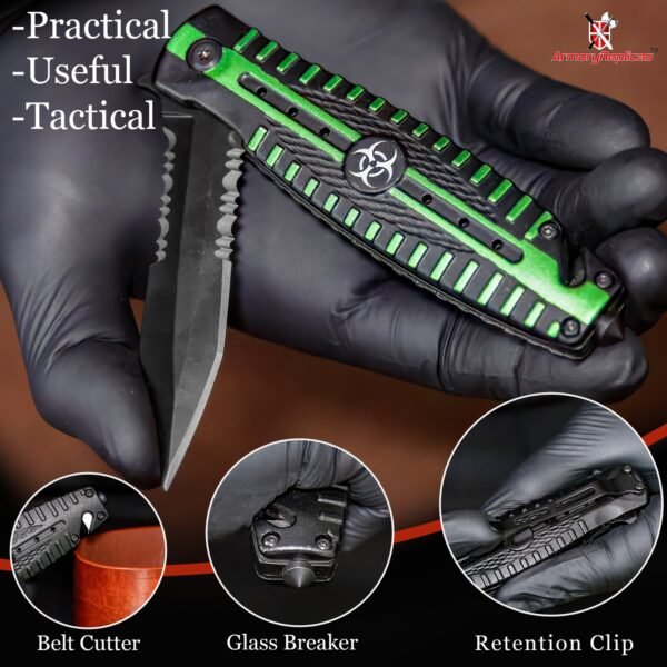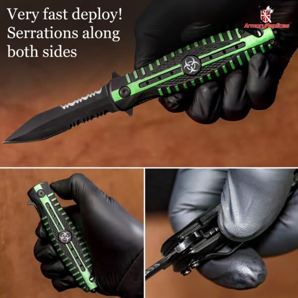 - Bio-Hazard emblem adds a unique touch to your knife collection.