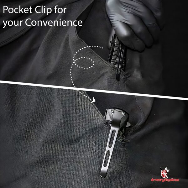 - Engineered steel pocket clip keeps the knife easily accessible at all times.