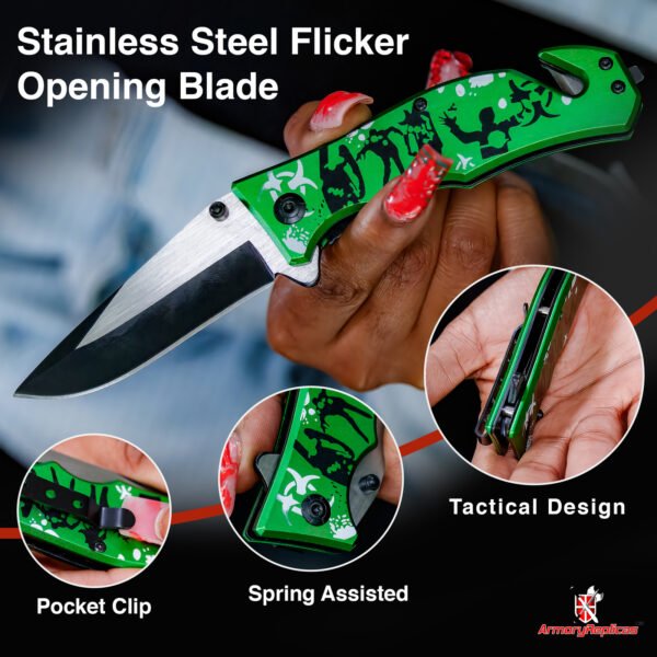 Reliable tactical stiletto folding knife with assisted opening, ideal for survival, rescue, and daily carry.